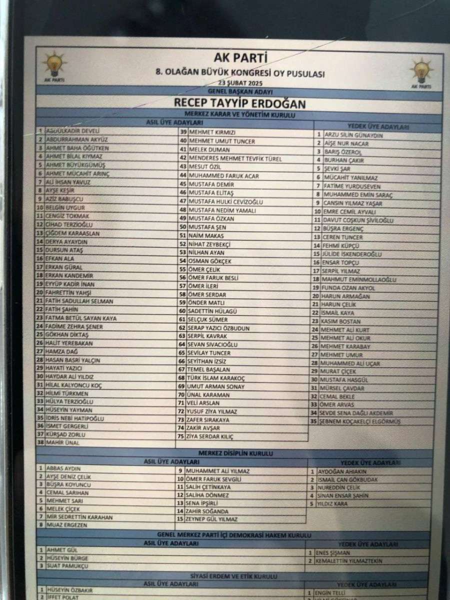 Adalet ve Kalkınma Partisi (AKP) tarafından yapılan son MKYK (Merkez Karar ve Yürütme Kurulu) toplantısının ardından yeni liste açıklandı.