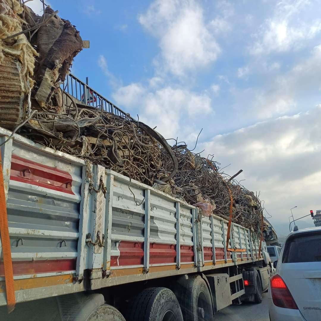 Depremin onuncu gününden itibaren hayatımıza giren ‘Canavar Kamyonlar’ Antakya ve Defne’de zarar görmeyen birkaç cadde de seyir etmeye devam ederken tehlike saçmaya da devam ediyorlar. Yıkım ve enkazın büyük ölçüde bittiği ancak inşaat temellerinden çıkan demir ve hurda taşımacılığının sürdüğü bölgede insanların tedirginliği sürüyor.