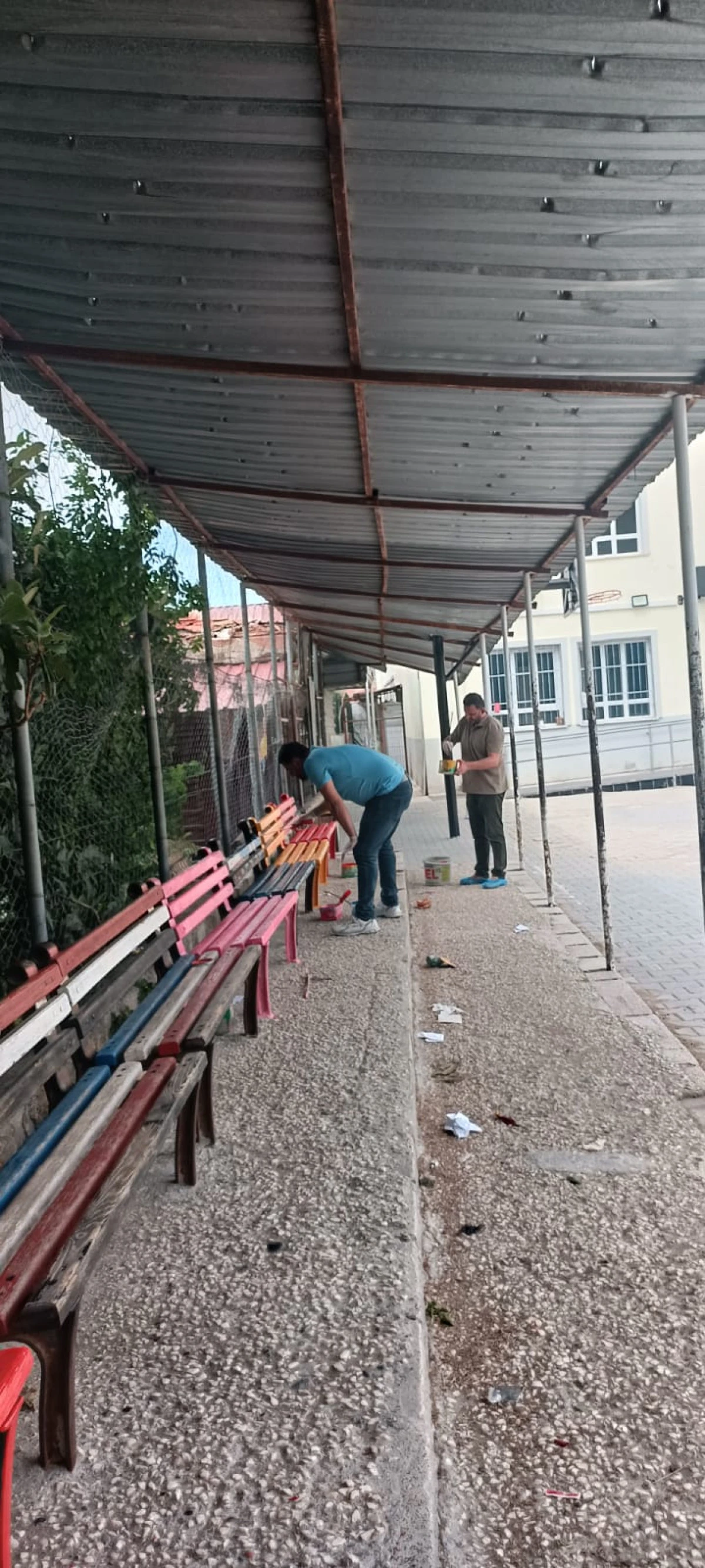 Kermes öncesinde titizlikle yürütülen çalışmalarda okul bahçesi temizlenirken, eskiyen banklar da onarılarak rengarenk boyandı. "Renkli dünya mutlu eder" ilkesiyle yapılan bu düzenlemeler, okul bahçesine baharın canlılığını taşıdı ve öğrencilerin neşeyle vakit geçirebileceği davetkar bir ortam oluşturdu.