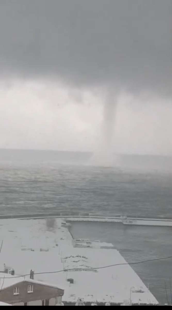 Olay anında bölgede kar yağışı da etkiliydi. Vatandaşlar, denizdeki hortumu cep telefonlarıyla kaydederek sosyal medyada paylaştılar.