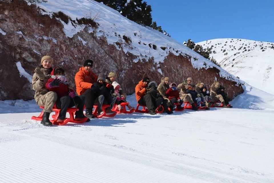 Erzincan İl Jandarma Komutanlığı Aile İçi Şiddetle Mücadele ve Çocuk Kısım Amirliği tarafından düzenlenen etkinlikte çocuklar Ergan Dağında kızak keyfi yaşadı.