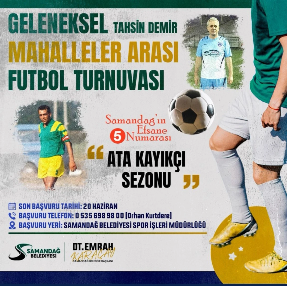 Samandağ’da Futbol Heyecanı Yeniden Başlıyor: "Ata Kayıkçı Sezonu" İçin Başvurular Başladı Samandağ Belediyesi’nin geleneksel hale getirdiği Tahsin Demir Mahalleler Arası Futbol Turnuvası bu yıl da büyük bir coşkuyla başlıyor. Samandağ futbolunun efsane isimlerinden biri olan Ata Kayıkçı anısına düzenlenecek turnuva, “Samandağ’ın 5 Numarası - Ata Kayıkçı Sezonu” ismiyle futbolseverleri bir araya getirecek. Samandağlıların büyük ilgi göstermesi beklenen turnuvaya başvurular 20 Haziran tarihine kadar devam edecek. Katılmak isteyenler, başvurularını Samandağ Belediyesi Spor İşleri Müdürlüğü’ne yapabilecek. Organizasyonla ilgili detaylı bilgi almak isteyenler ise 0 535 698 98 00 numaralı telefondan Orhan Kurtdere ile iletişime geçebilecek. Turnuva, mahalle takımlarının rekabetini dostlukla birleştirerek hem sporu hem de toplumsal dayanışmayı teşvik etmeyi amaçlıyor. Samandağ Belediye Başkanı Dr. Emrah Karaçay’ın destekleriyle düzenlenen etkinlik, ilçede futbolun gelişimine katkı sunmayı hedefliyor.