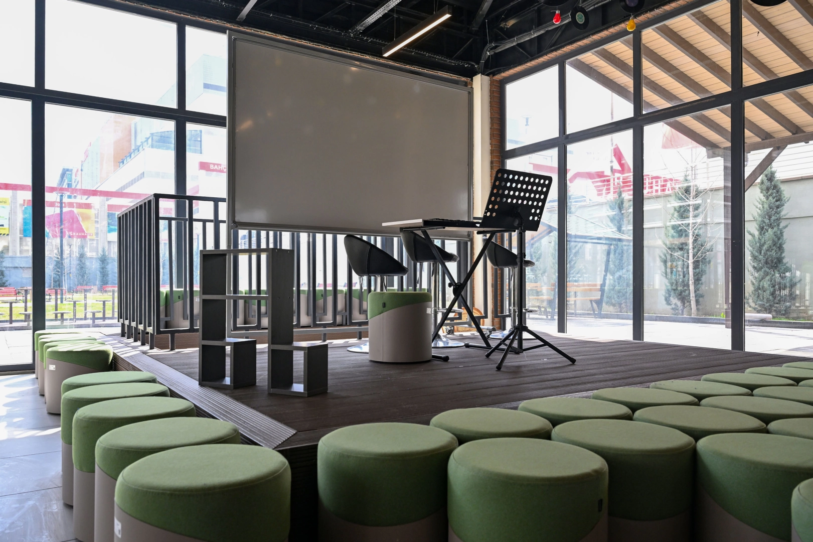 Müzikseverler stüdyo ekipmanlarını kullanabildikleri gibi dilerlerse kendi ekipmanlarını getirerek de çalışmalarını sağlayabiliyor. Müzik stüdyosunda bulanan cep sahne ve fuaye alanında ise çeşitli müzikal etkinlikler ve atölye çalışmaları gerçekleştiriliyor.