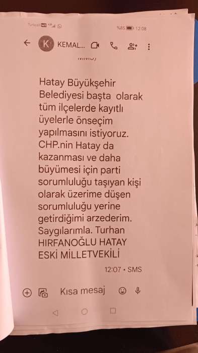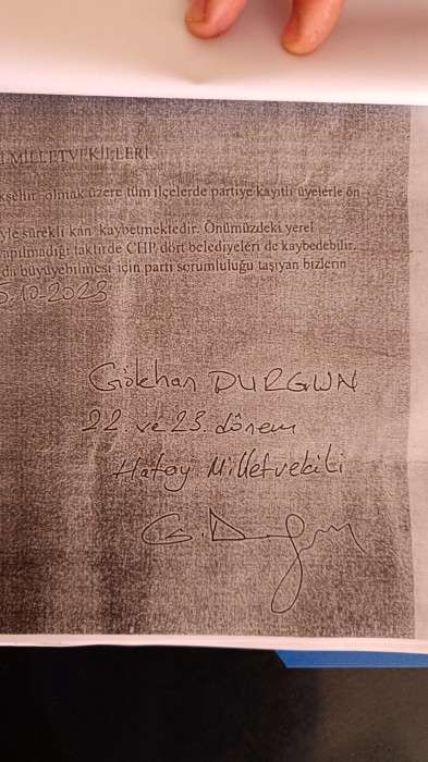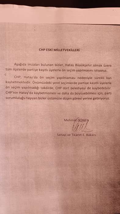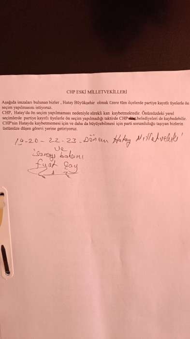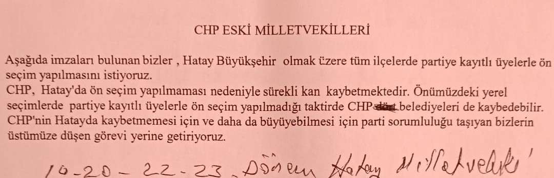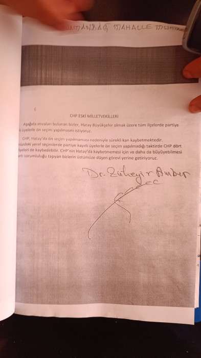 "Aşağıda imzaları bulunan bizler, Hatay Büyükşehir olmak üzere tüm ilçelerde partiye kayıtlı üyelerle ön