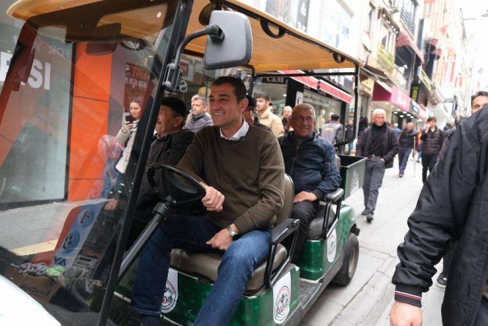 Giresun Belediye Başkanı Fuat Köse, sıra dışı bir harekete imza atarak halkın arasına karıştı ve golf aracının direksiyonuna oturup şehirde tur attı.