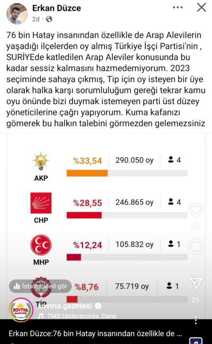 Türkiye İşçi Partisi'nin üyesi Erkan Düzce Suriye'deki Alevi katliamlarına yeterince tepki gösteremeyen partisini eleştiren bir yazı kaleme almış. Bizde bu eleştirisini gazeteciler olarak dikkate alıyor ve yayınlıyoruz.