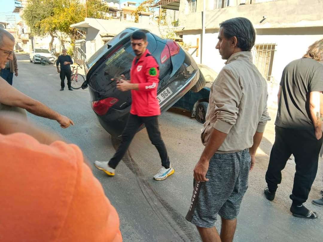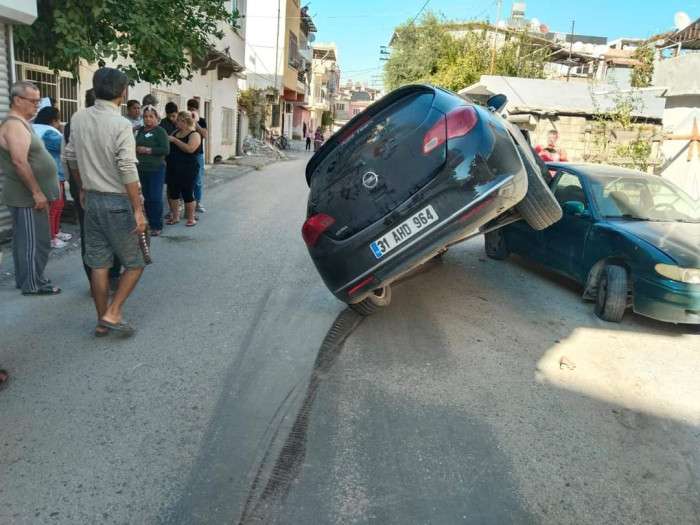 İskenderun Muradiye mahallesinde yaşanan kazada direksiyon hakimiyetini kaybeden araç park halinde bulunan bir başka aracın üzerine çıktı.