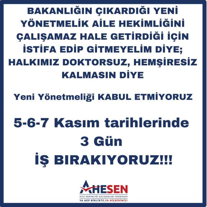 7 Kasım Perşembe Son eylem, saat 12.00’de Defne ilçesindeki Rasim Gali ASM önünde yapılacak. Davul zurna eşliğinde oturma eylemi ve basın açıklamasının ardından bir değerlendirme toplantısıyla etkinlikler sona erecek.