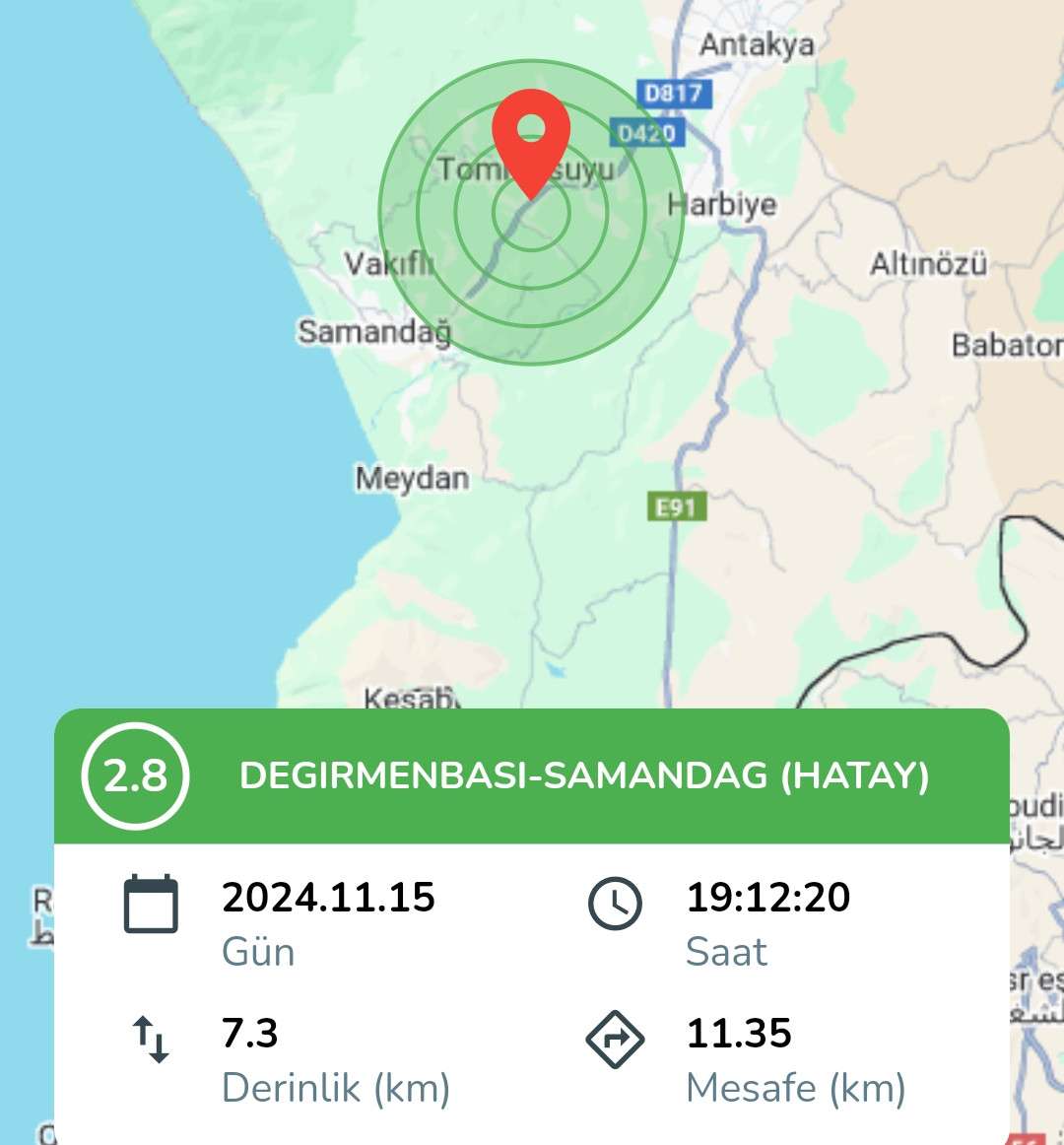 Samandağ'da Deprem: 2.8 Şiddetinde Sarsıntı Hissedildi