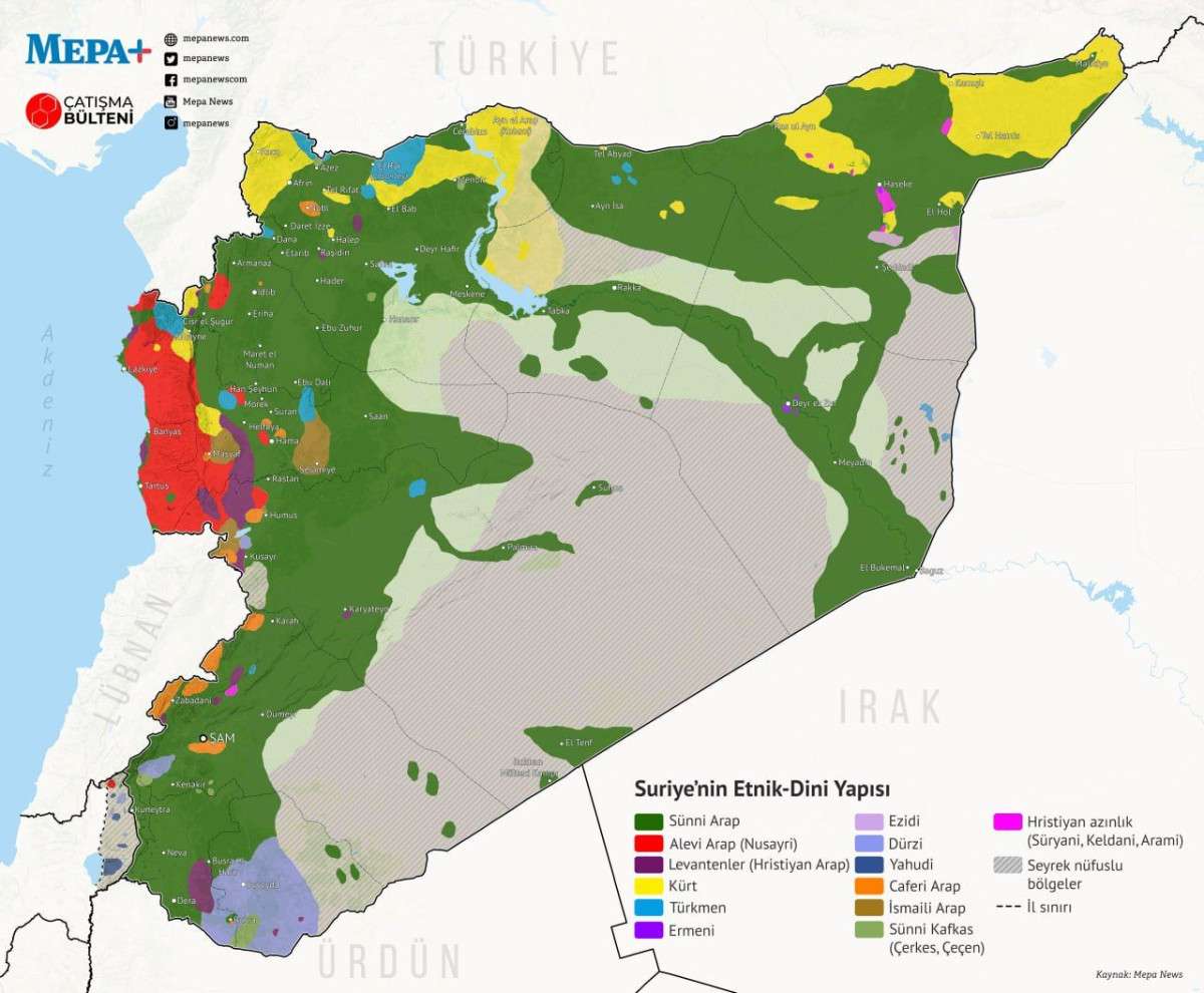 Suriye'nin etnik ve dini yapısı oldukça çeşitlidir ve bu çeşitlilik, ülkenin tarihsel, kültürel ve sosyal yapısının önemli bir parçasıdır. İşte Suriye'nin temel etnik ve dini grupları: